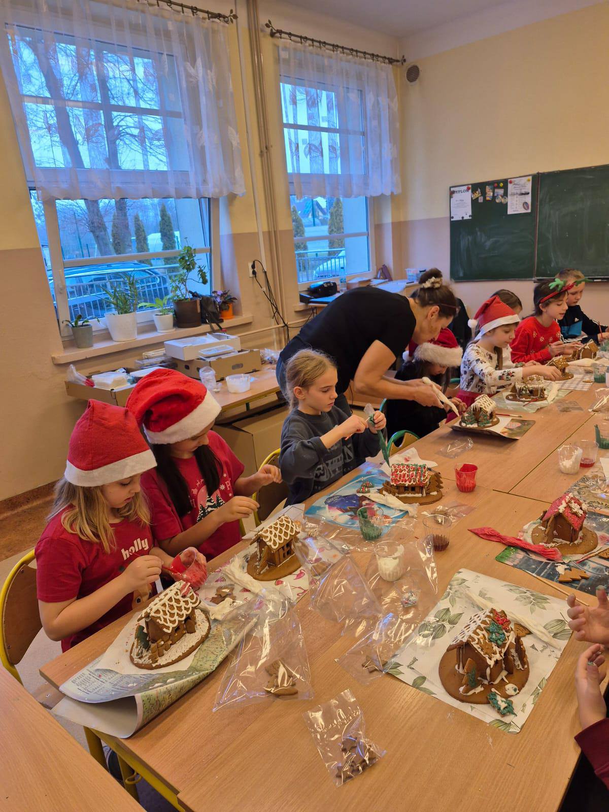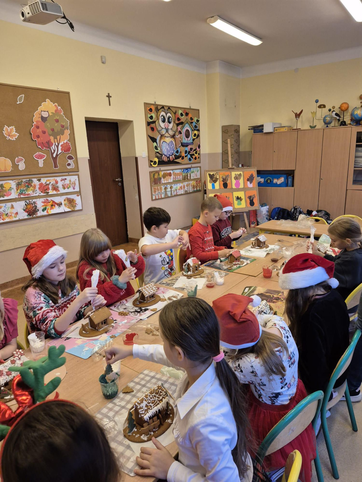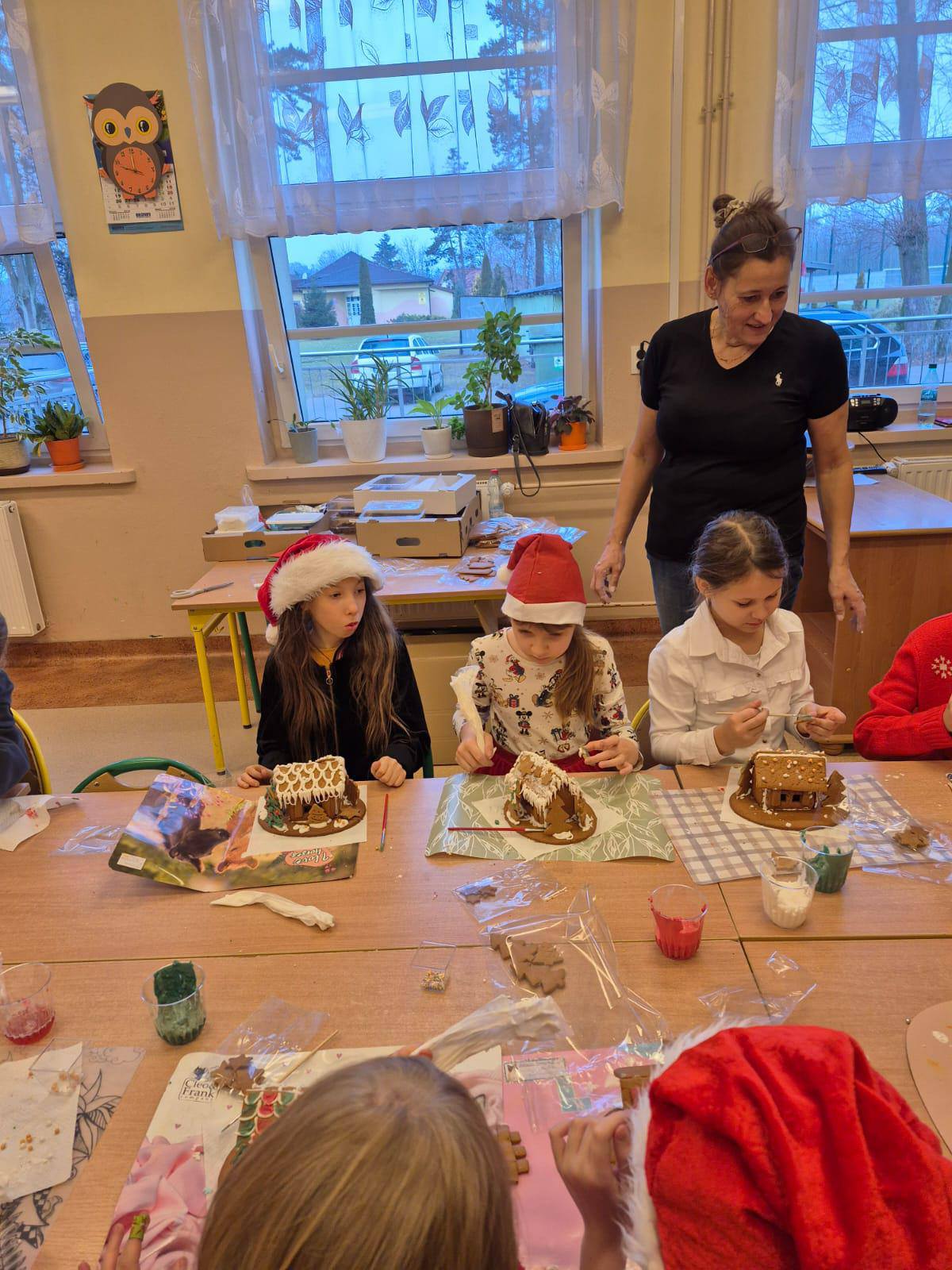 6 grudnia w naszej szkole odbyły się wyjątkowe mikołajkowe warsztaty piernikowe, w których uczestniczyli uczniowie klas 2b i 3a. To był dzień pełen świątecznego ducha, kreatywności i radości! Podczas warsztatów dzieci miały okazję stworzyć prawdziwe arcydzieła – piernikowe domki. Każdy uczestnik z entuzjazmem łączył poszczególne elementy domków, a następnie dekorował je lukrem. Atmosfera była niezwykle radosna, a dzieci świetnie się bawiły. Warsztaty stały się doskonałym sposobem na wspólne świętowanie Mikołajek i wprowadzenie wszystkich w świąteczny nastrój. Uczniowie z pewnością na długo zapamiętają ten dzień, a ich piernikowe domki będą wspaniałą ozdobą na świątecznym stole.