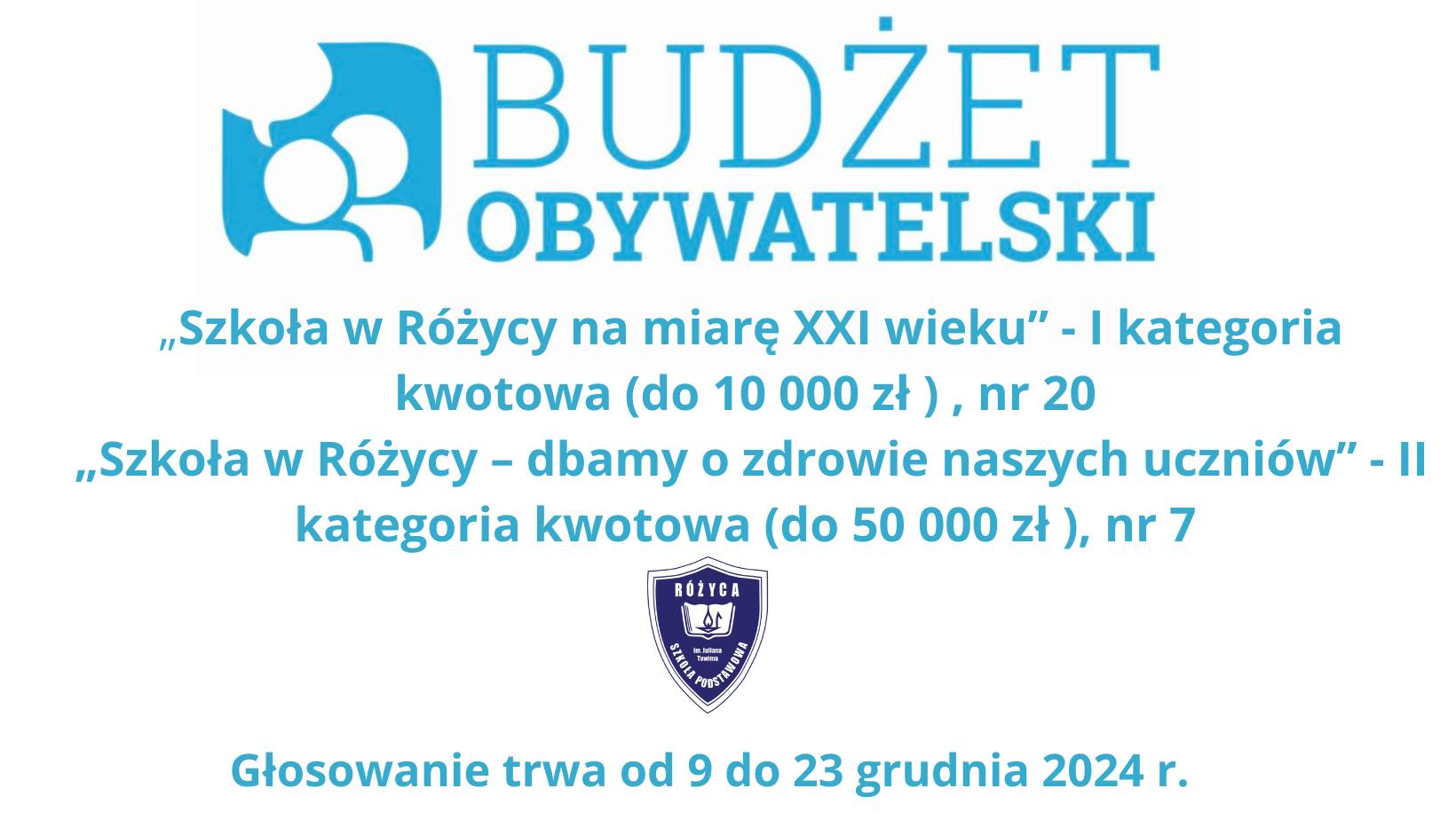 9 grudnia (w najbliższy poniedziałek) rusza głosowanie na przedsięwzięcia w ramach Budżetu Obywatelskiego! Można oddać również głos na nasze dwa projekty, które powstały z inicjatywy pani wicedyrektor Marty Lewandowskiej: