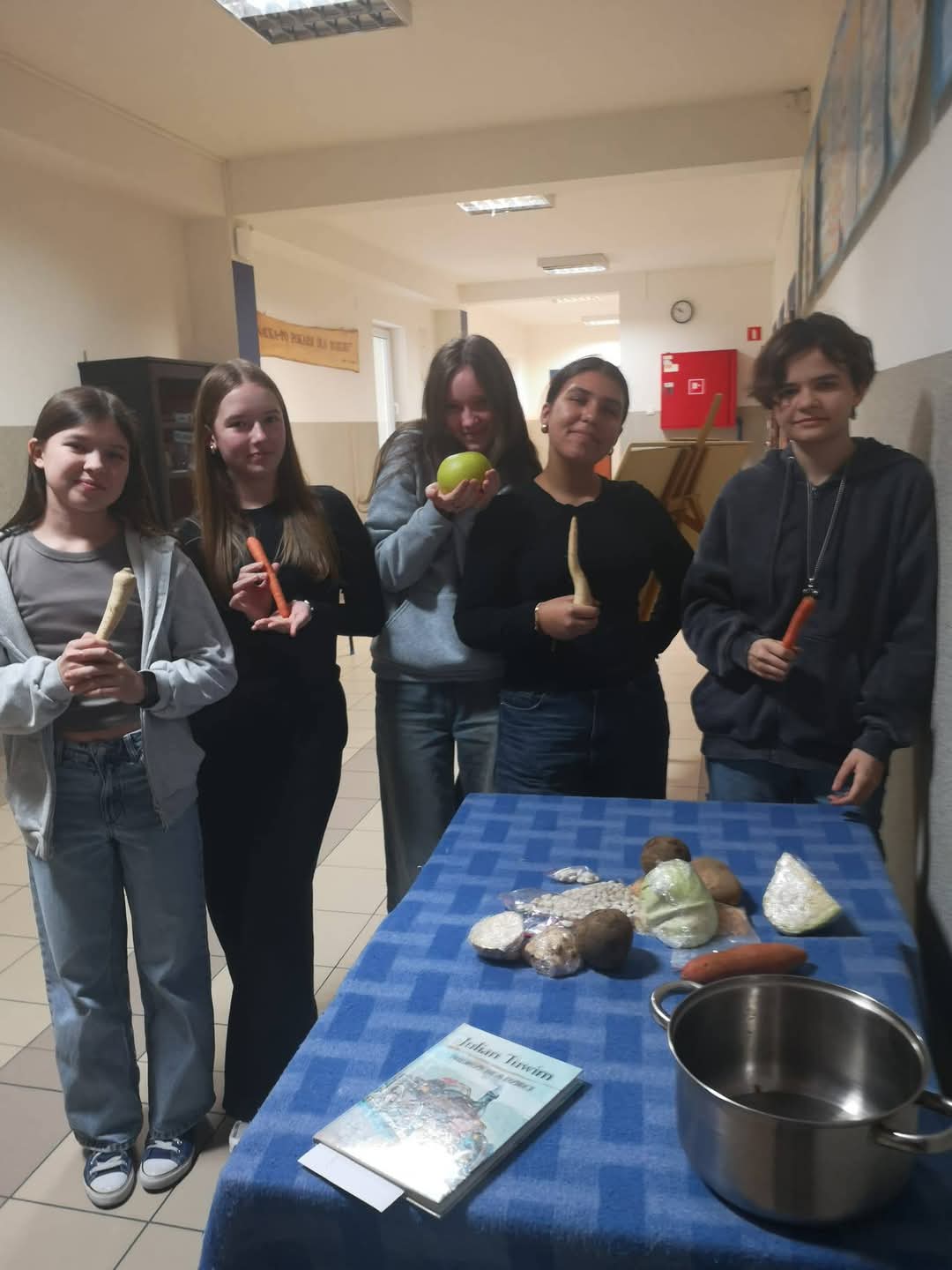 Biblioteka szkolna zorganizowała quiz,, Rozpoznaję warzywa,, na podstawie wiersza Juliana Tuwima pt. : Warzywa.