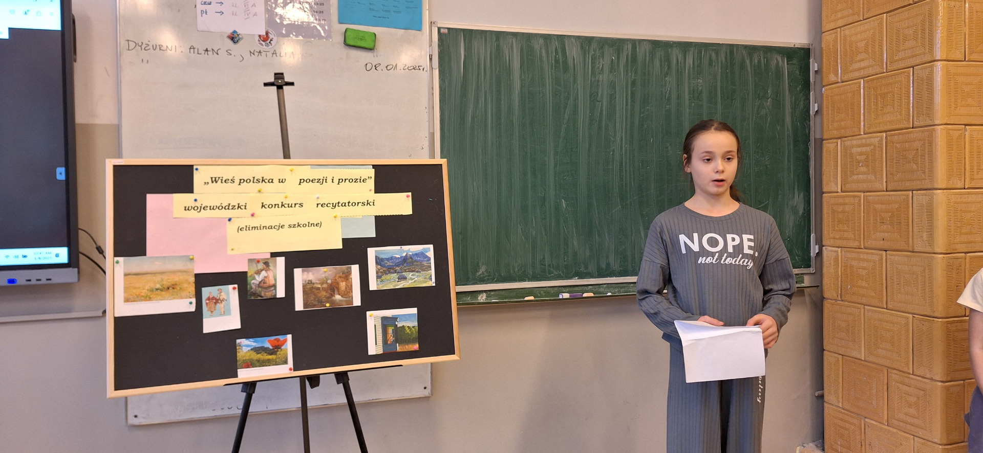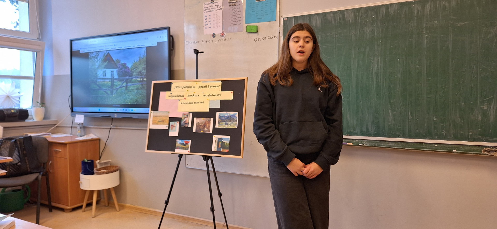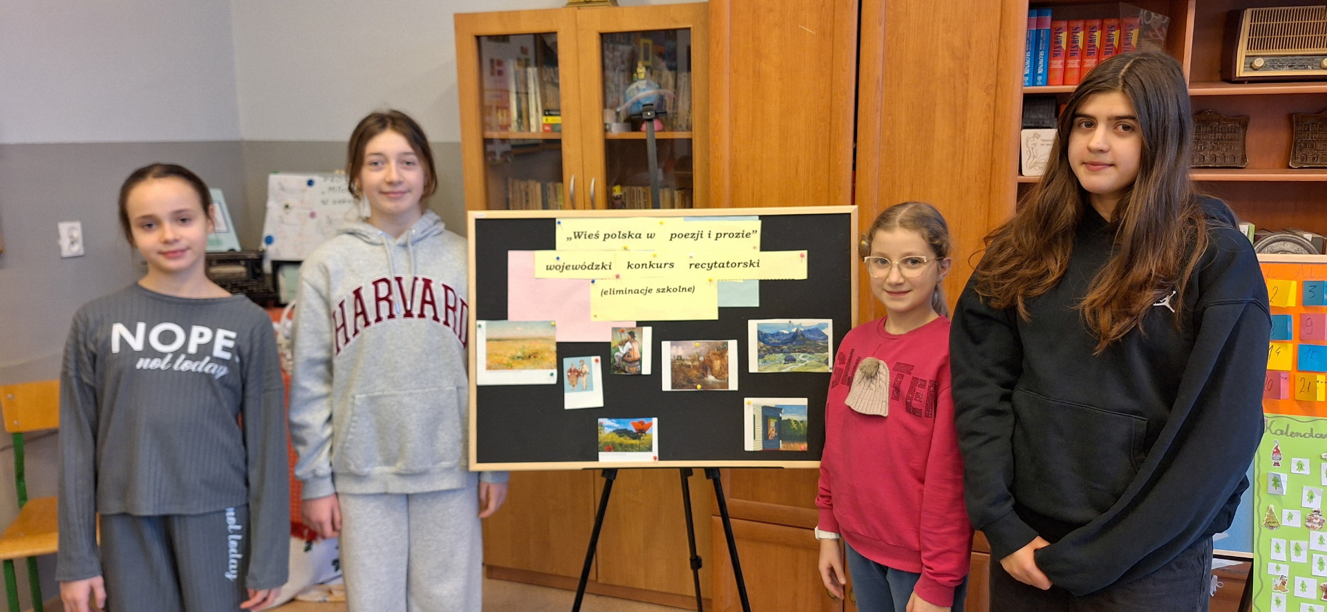 W środę, 8 stycznia, odbyły się szkolne eliminacje do Wojewódzkiego Konkursu Recytatorskiego "Wieś polska w poezji i prozie" organizowanego przez Szkołę Podstawową im. Narcyzy Żmichowskiej w Rzeczycy pod patronatem Kuratorium Oświaty w Łodzi. Komisja konkursowa, w skład której weszły obie panie dyrektor, nauczycielka języka polskiego oraz pani bibliotekarka wyłoniła pięcioro najlepszych uczniów i to oni będą reprezentowali naszą placówkę w dalszej części konkursu. Są to: Laura Żądło z kl.4a, Malwina Naporska z kl.4b, Nika Kenig z kl. 6a, Barbara Nowak z kl. 7b i Jagoda Tyburc z kl.8a. Etapy rejonowy i wojewódzki odbędą się już za miesiąc - 7 lutego. Trzymamy kciuki za naszych uczniów i życzymy im powodzenia!!!![]()
