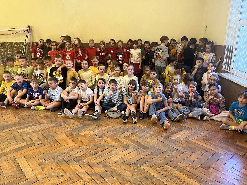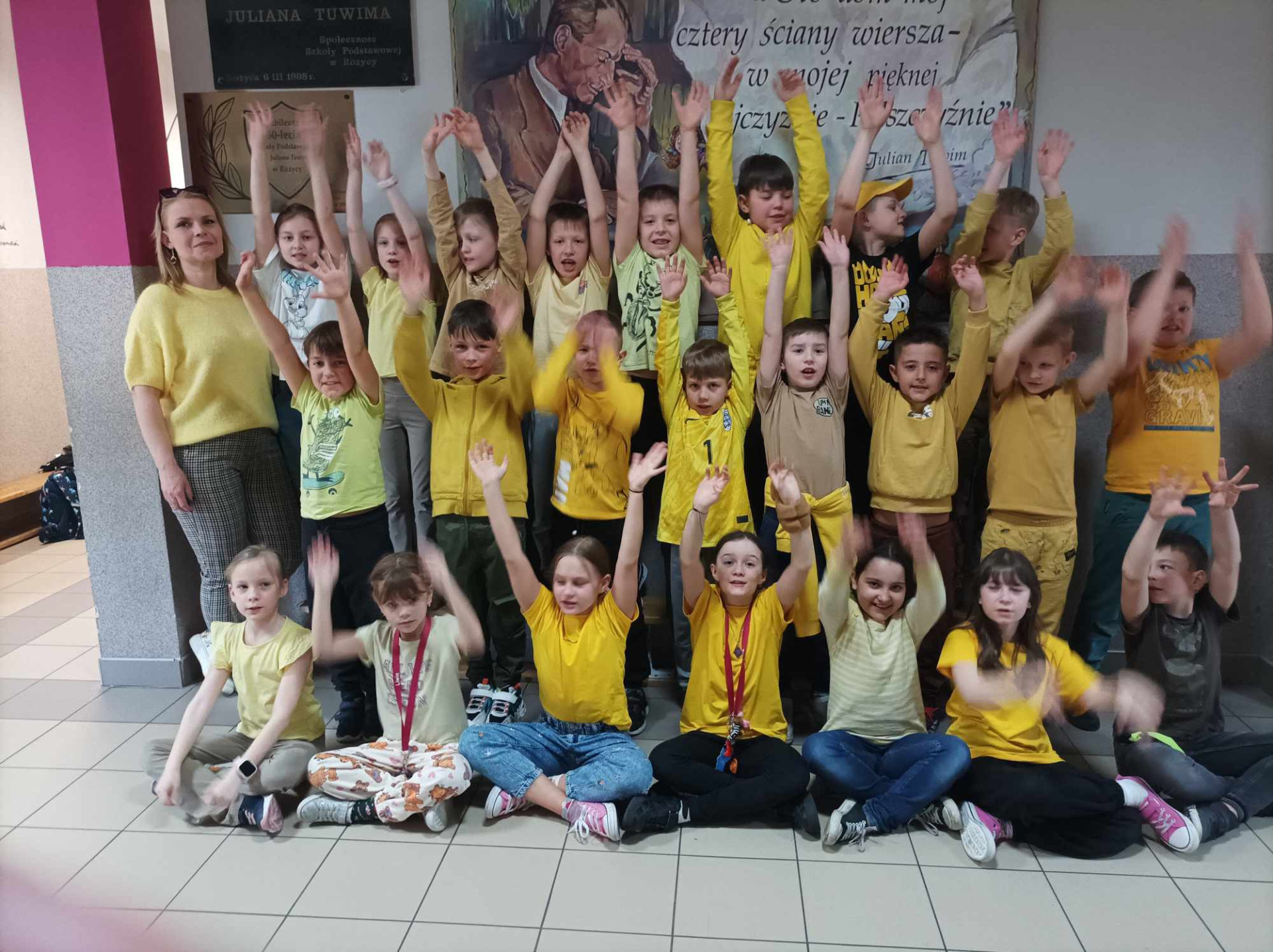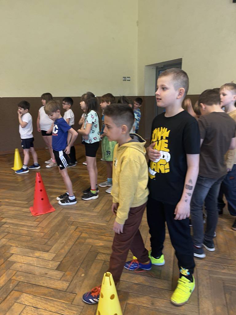 Uczniowie klas I-III przywitali pierwszy dzień wiosny na sportowo. Ubrani w piękne kolory wiosny rywalizowali na torach przeszkód tocząc piłkę,przekładając hula hop,sadząc ziemniaki. Rywalizacja była bardzo zacięta,a doping niósł się po całej szkole.Wszystkie drużyny zajęły egzekwo pierwsze miejsce. W nagrodę opiekunki SU, które przygotowały i poprowadziły zawody osłodziły smak zwycięstwa kolorowymi cukierkami. Na koniec wszyscy zostali zaproszeni do wspólnego zdjęcia. Dziękujemy za wspólną zabawę.