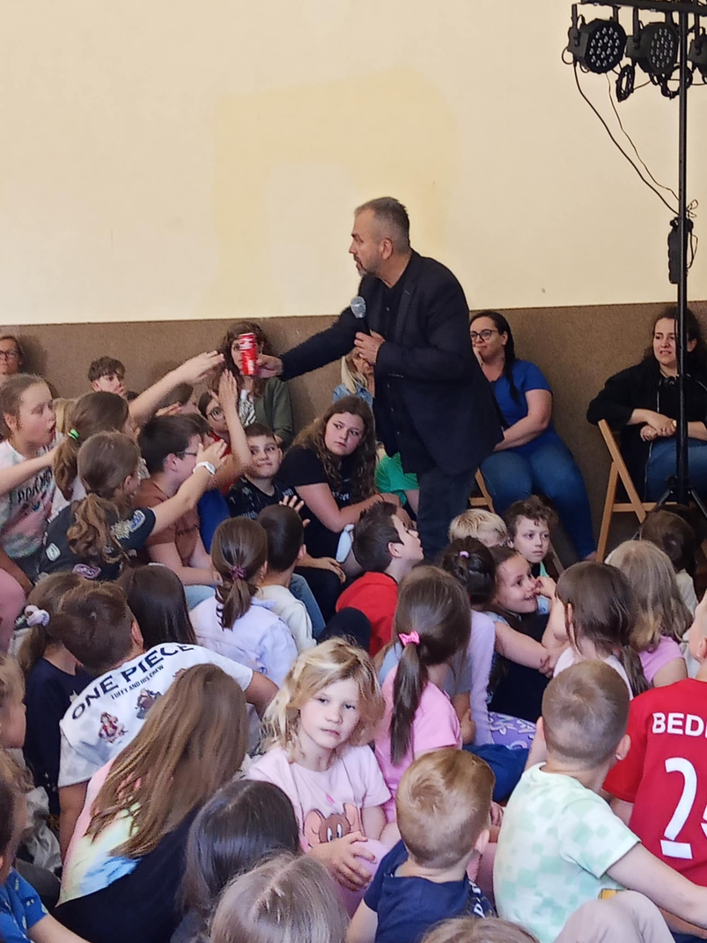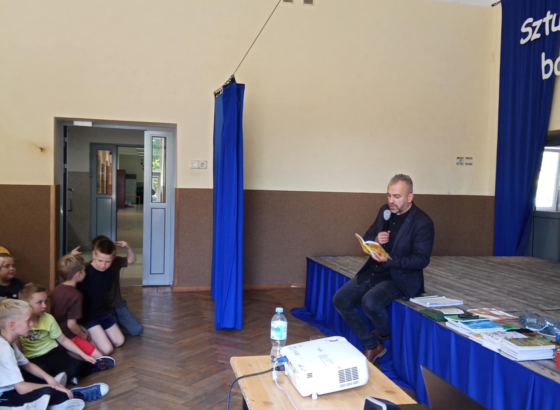 We wtorek w naszej szkole odbyło się spotkanie autorskie z Przemysławem Jakóbczykiem, pisarzem i prezesem Fundacji Akademii Samodzielności. Podczas spotkania gość w bardzo ciekawy sposób przedstawił cały proces powstawania książki, jej drogi od pomysłu pisarza – do czytelnika. Uczniowie dowiedzieli się jak powstaje książka, kto to jest ilustrator, grafik, wydawca, recenzent, redaktor, kto robi korektę książki oraz co oznacza symbol ISBN. Pan Jakóbczyk zaprezentował również swoje książki, „Księga samodzielności, czyli przygody Zuzy na bezludnej wyspie"- tom 1, „Księga samodzielności, czyli Zuza w tarapatach"- tom 2, „Księga samodzielności, czyli przygody Zuzy w krainie Kangurów"- tom 3. Książki opowiadają o przygodach nastoletniej dziewczynki, która uczy się jak radzić sobie w ekstremalnych warunkach. Autor w ciekawy sposób łączy wątki przygodowe z praktyczną wiedzą survivalową. Spotkanie było ciekawe i pouczające. Uczniowie mogli zakupić książki z autografem autora, a także wykonać pamiątkowe zdjęcie .