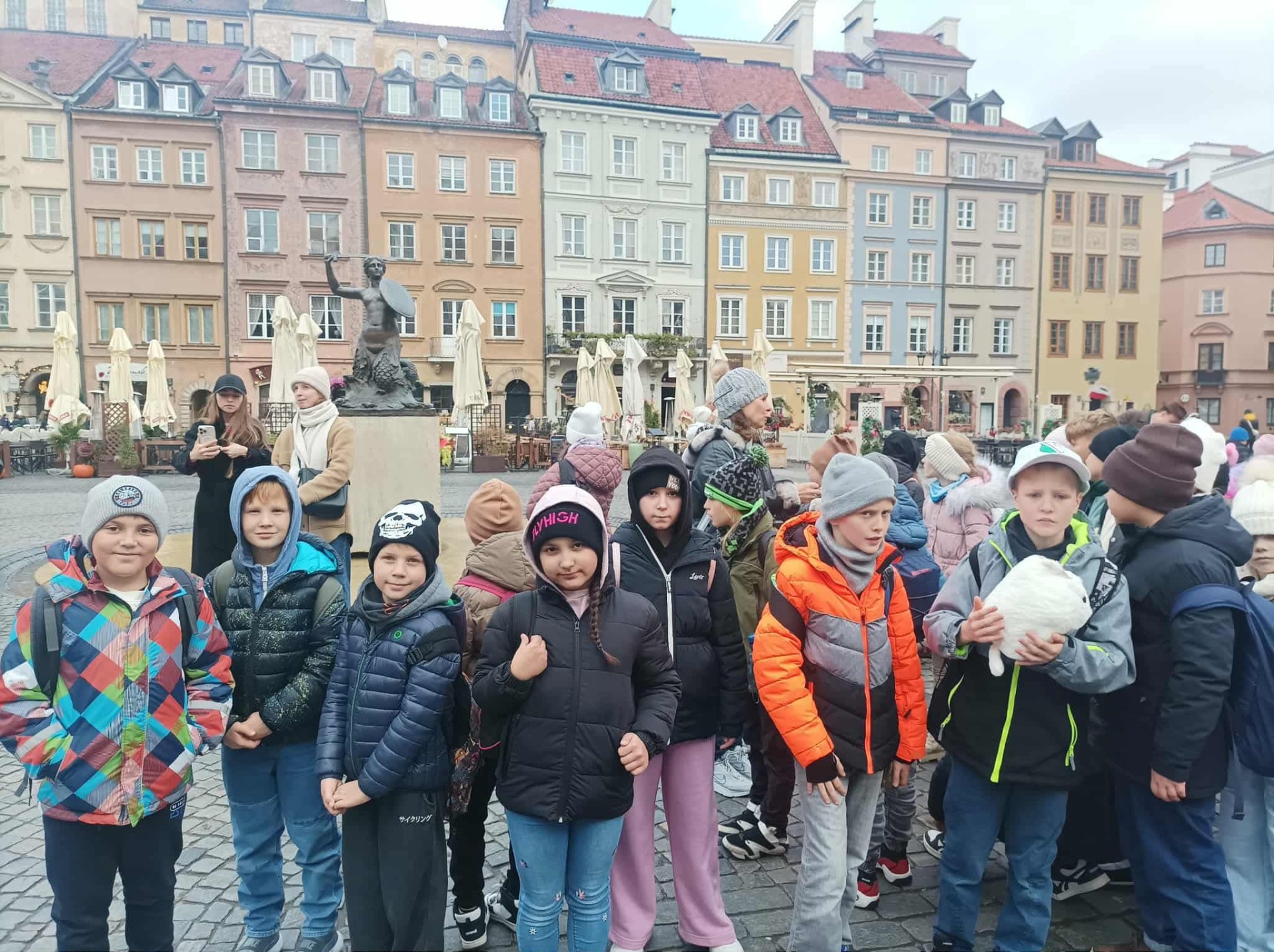 W środę 29 października uczniowie klasy IIIb i IVa naszej szkoły pod opieką Agnieszki Nowackiej, Adriana Krawczyka i Zofii Dębskiej wybrali się na wycieczkę do Warszawy. Pierwszym punktem programu było zwiedzanie Starego Miasta z panią przewodnik, która dzieliła się z nami ciekawostkami o Warszawie. Uczniowie zobaczyli między innymi Kolumnę Zygmunta, Zamek Królewski, Pałac Kultury i Nauki, Pomnik Małego Powstańca, Rynek Starego Miasta z Pomnikiem Syrenki. Przy Pomniku Syrenki podziwiali i wsłuchiwali się w piękną melodię i śpiew znanego w Warszawie kataryniarza Jana. Nie mogło również zabraknąć czasu wolnego na zakup pamiątek. Następnie wszyscy udaliśmy się na pyszny obiad. Był to moment na odpoczynek i posilenie się przed kolejnymi atrakcjami. Niezwykle ciekawym miejscem dla uczniów okazał się stadion PGE Narodowy. Było wśród nas wielu kibiców piłki nożnej, a wizyta na stadionie była spełnieniem ich marzeń. Podczas zwiedzania każdy miał szansę poczuć się jak kibic siadając na jednym z biało-czerwonych krzesełek w strefie VIP. Zwiedziliśmy również szatnię polskiej reprezentacji, gdzie można było poczuć przedmeczową atmosferę, którą potęgowały wiszące tam koszulki zawodników. Widzieliśmy także pomieszczenia odnowy biologicznej, centrum prasowe, gdzie uczniowie zasiedli przy ławie konferencyjnej. Mieliśmy również okazję pokonać całą trasę piłkarską od szatni, aż na płytę. I to jeszcze nie był koniec wycieczkowych atrakcji. Wybraliśmy się również do Minicity - miasteczka zawodów. Uczniowie bardzo szybko odnaleźli się w interaktywnej przestrzeni, miasteczka, gdzie mogli wcielić się w różne role zawodowe. Pracowali w realistycznie odwzorowanych miejscach, wyposażonych w profesjonalny sprzęt. Do wyboru były bank, galeria sztuki, straż pożarna, studio telewizyjne, szpital, warsztat inżynierski, klub fitness, fabryka ciepła, komisariat policji, pracownia projektowa, radio, redakcja internetowa czy serwis samochodowy. Pod okiem profesjonalnych instruktorów, uczyli się jak wygląda praca w danym zawodzie. Każda stacja oferowała ciekawe wyzwania, które rozwijały umiejętności praktyczne oraz kreatywność. Za ciężką pracę uczniowie byli wynagradzani miniasami, które później mogli wydać w sklepie „Empik”, co stanowiło dodatkową, fajną atrakcją. Wycieczka do Miniciti była świetną zabawą, ale również doskonałą okazja do nauki i odkrywania swoich pasji. To doświadczenie na długo pozostanie w pamięci. Późną wieczorną porą, zmęczeni, ale i zadowoleni, z bagażem nowych doświadczeń i wspomnień uczniowie wrócili do szkoły w Różycy, gdzie czekali na nich rodzice. To była naprawdę udana wycieczka.