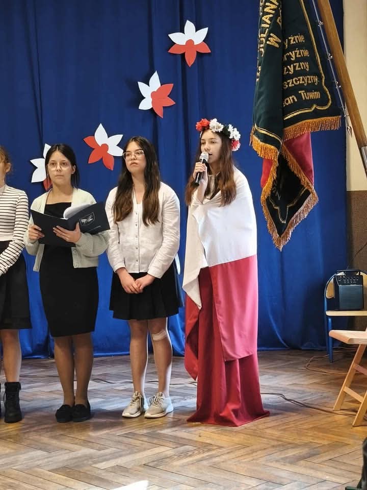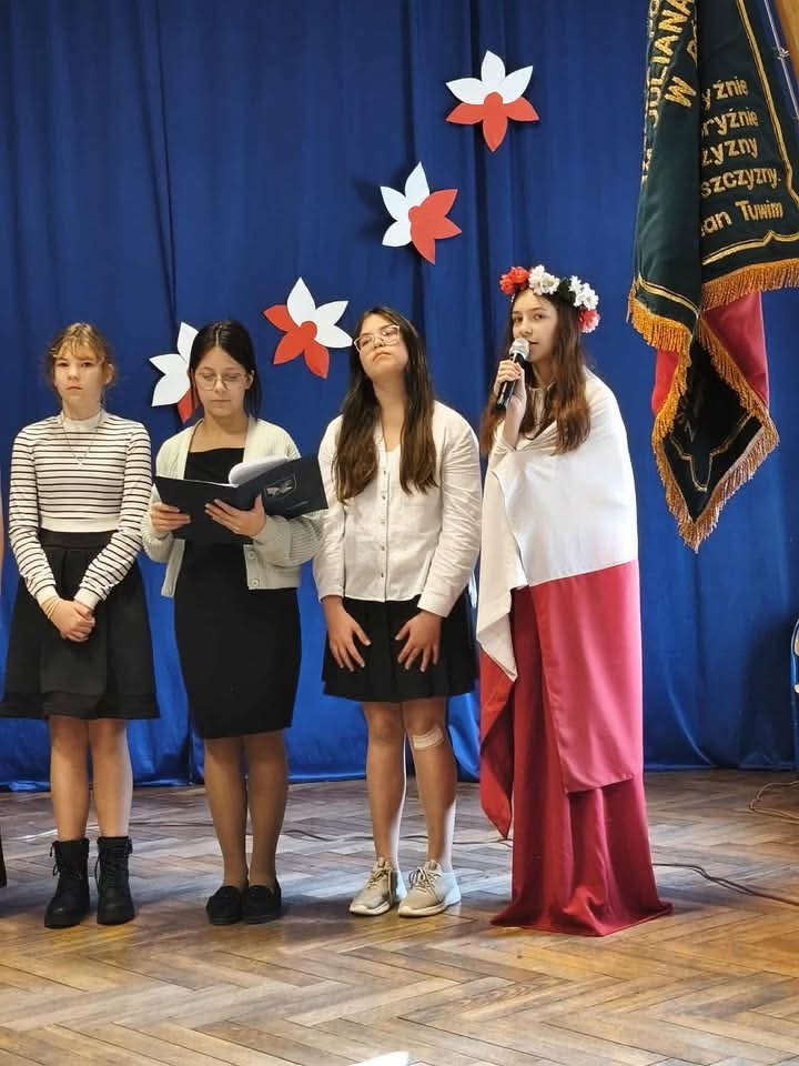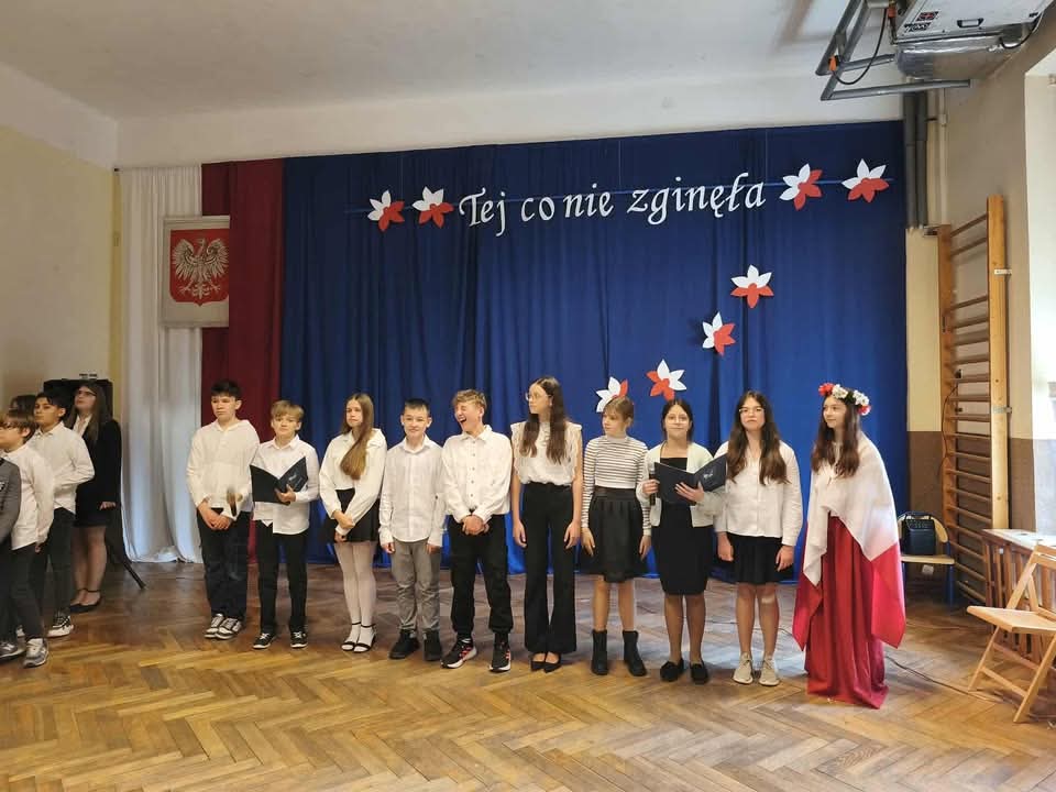 Uczniowie, w eleganckich strojach i z ogromnym zaangażowaniem, zaprezentowali montaż słowno-muzyczny, który w poetycki i wzruszający sposób ukazał drogę, jaką Polska musiała przejść od czasów zaborów do odzyskania niepodległości w 1918 roku. Poetyckie słowo, wymowne gesty oraz patriotyczne pieśni stworzyły niezapomnianą atmosferę refleksji i dumy narodowej.