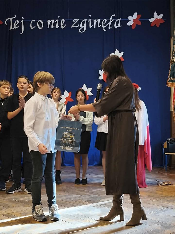 Uroczystość była także okazją do uhonorowania szkolnych sukcesów. Jakub Siedlik z klasy 7a, podopieczny pani Marty Lewandowskiej, został laureatem III miejsca w ogólnopolskim konkursie historycznym „Kobiety starożytnego Egiptu”.