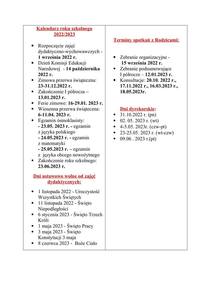 KALENDARZ ROKU SZKOLNEGO 2022/2023